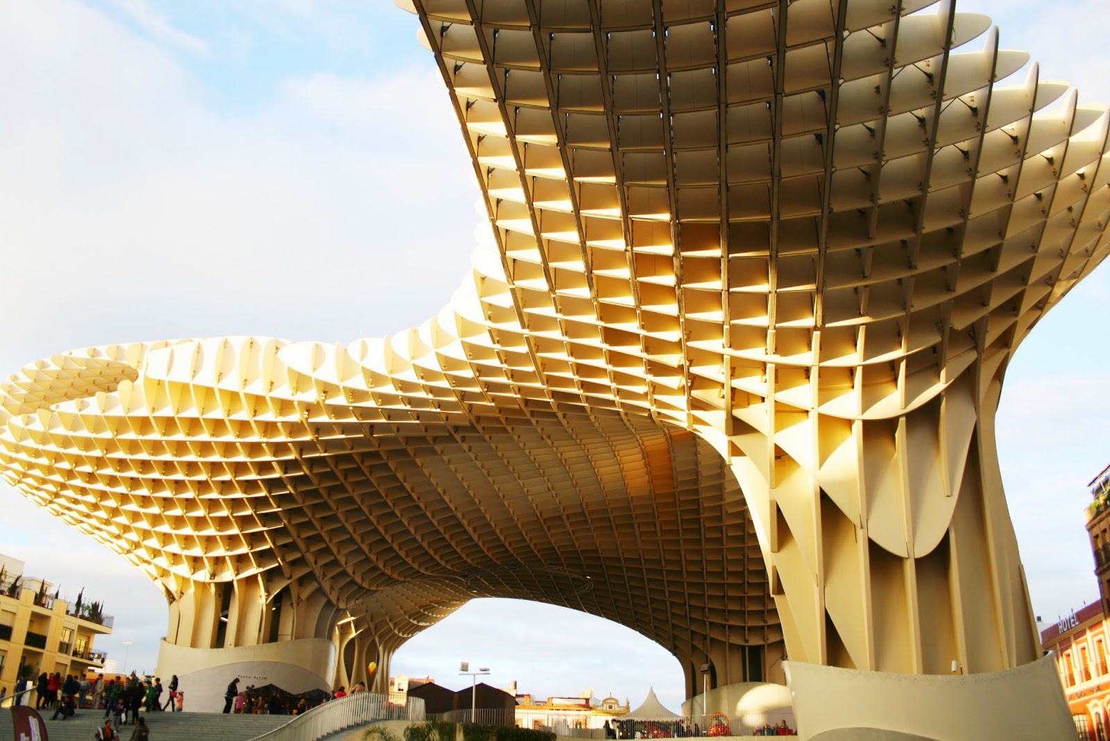S’il y a un projet architectural qui a créé de la polémique ces dernières années à Séville, c’est bien celui-ci (je vous parlerai de la tour Pelli dans un autre article). Cet espace attenant à la Plaza de la Encarnación a été pendant des années occupé par le marché du quartier. Laissé longtemps à l’abandon, il a retrouvé une nouvelle identité, et une raison d’être dans le centre-ville, grâce au projet de l’architecte allemand Jürgen Mayer. La structure ultramoderne a provoqué l’indignation d’une grande partie de la ville, pour qui il était inconcevable d’insérer un tel bâtiment dans le coeur des vieux quartiers. La presse locale a dénoncé une affronte contre la Séville éternelle et son style traditionnel. Mais finalement, une fois les travaux finis, « las setas » (les champignons, comme on les surnomme) ont réussi à séduire une ville qui a démontré être moins conservatrice qu’elle n’en a pas l’air.